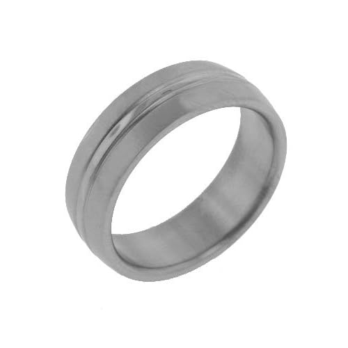 Here is some comment of Mens Single Stripe Brushed Satin Pure Titanium Wedding Band Ring by S. Kerr (Amazon.com)