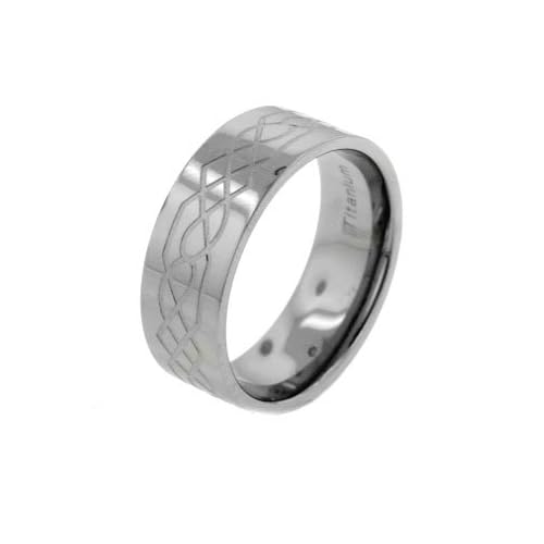 8mm Wide Mens Titanium Etched Celtic Knot Pattern Wedding Band Ring (Size 8,9,10,11,12,13) Description