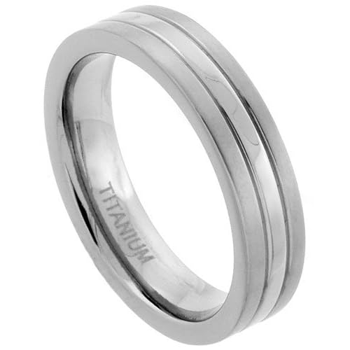 8mm Raised Center 5 Groove Titanium Ring (Sizes 3-13)Description