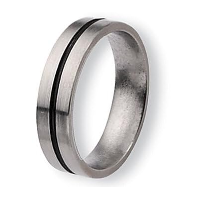 Black Accent Brushed Titanium Ring (6.0 mm) - Sizes 8-12